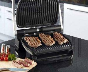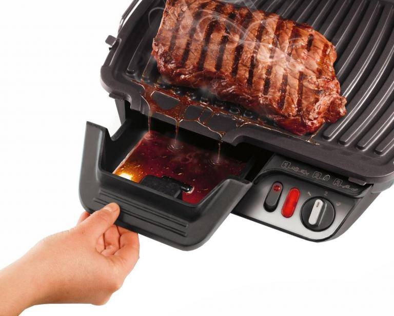 В комбинированных грилях, которые имеют разные жарочные поверхности, есть возможность готовить несколько блюд за один раз. Во многих моделях высота панелей регулируется, чтобы закладывать разные по величине куски продуктов. Также они оснащаются удобными съемными резервуарами для стока жира, которые можно помыть отдельно от всего прибора.