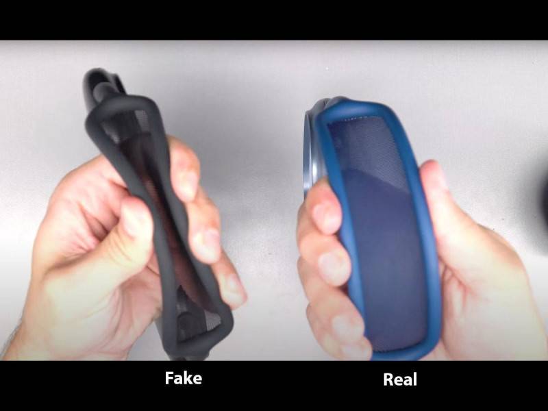 Есть небольшие отличия даже в самой форме наушника, подделка более вытянута, кроме того шов на фейке очень сильно заметен, на оригинале его практически не видно. Сеточка должна быть металлической, а не тканевой и два круглых отверстия должны находится ровно в овале, а не быть съехавшими к одной из сторон.