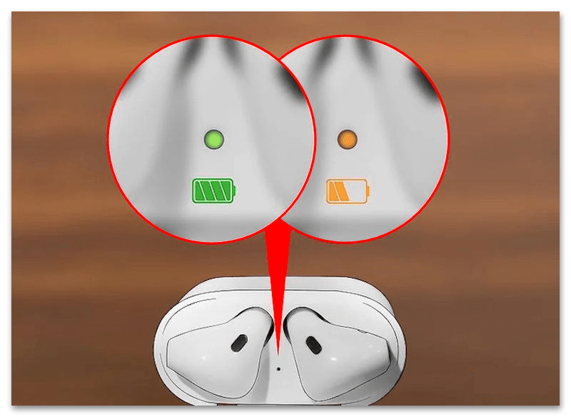 Прежде всего обратите внимание на индикатор питания, который, в зависимости от поколения и модели AirPods, может быть расположен внутри (1-ое и 2-ое поколение без беспроводной зарядки) или снаружи (2-ое поколение с беспроводной зарядкой и Pro) кейса. На оригинальных устройствах он находится на одном уровне с корпусом, то есть не выпирает и не утоплен, а светиться может только зеленым (при достаточном уровне заряда), оранжевым (когда остается менее одного цикла) и белым (в режиме поиска, когда предварительно было выполнено длительное нажатие на кнопку на корпусе)