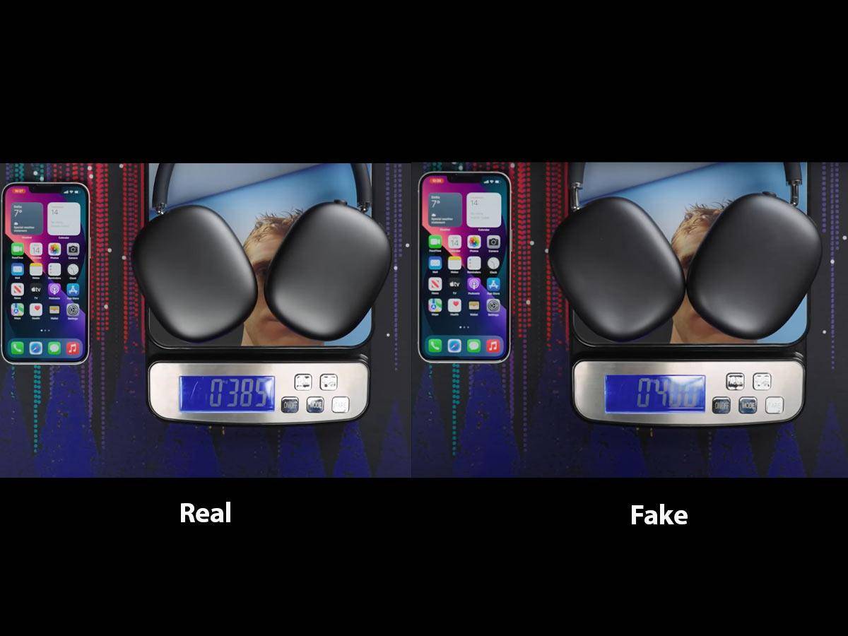 Real AirPods Max weighing slightly less than fake AirPods Max. (From: Youtube/Linus Tech Tips)