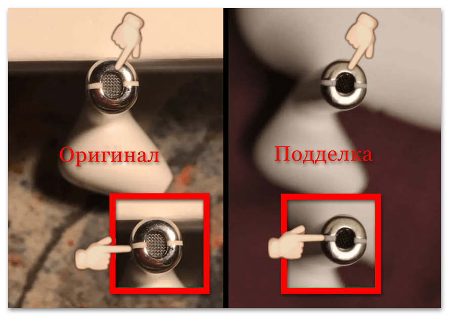 В изготовлении диффузоров, как для всей продукции, Apple использует качественный материал (металлическая сетка), что в сравнении с репликой (тряпичная сетка) позволяет быстро определить «подлинник».