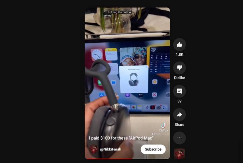 Поддельные AirPods Max проходят проверку iOS 16 (от: Youtube/НиккиФара)
