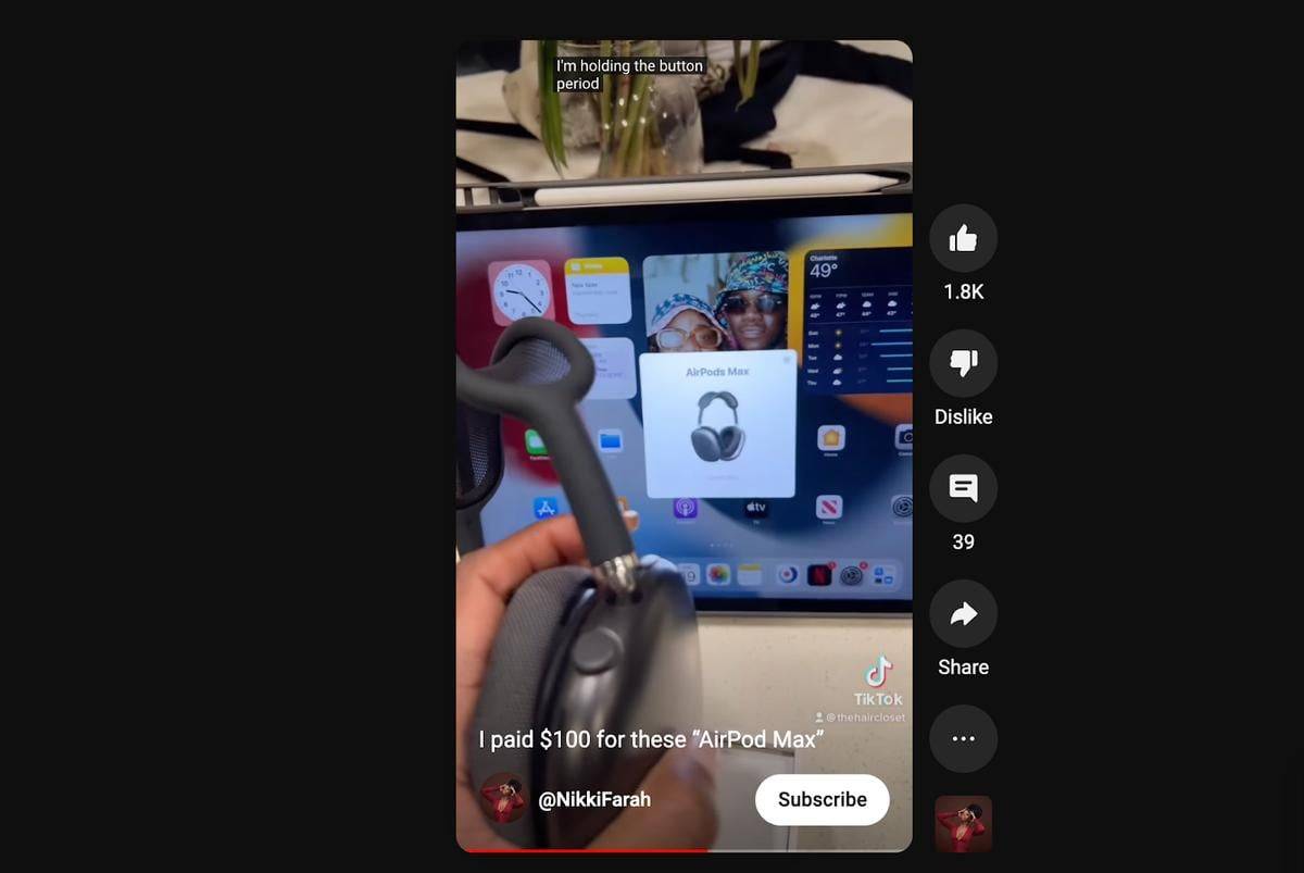 Поддельные AirPods Max проходят проверку iOS 16 (от: Youtube/НиккиФара)