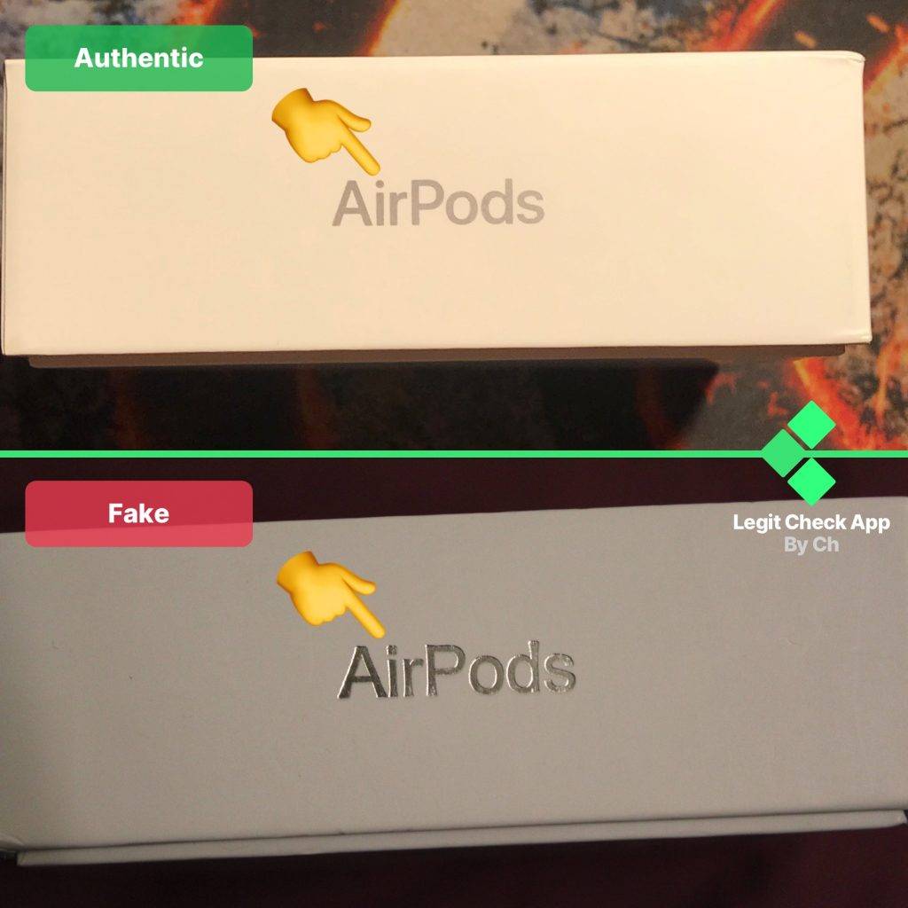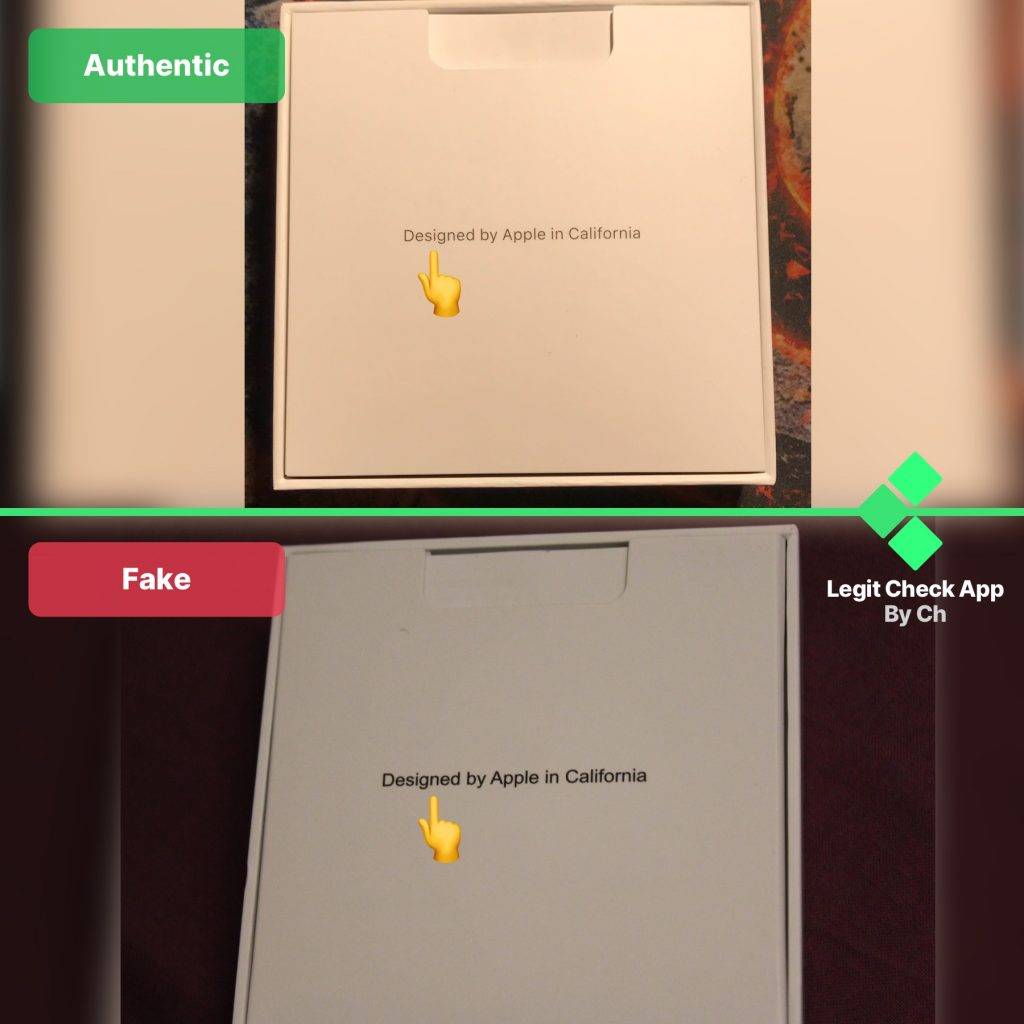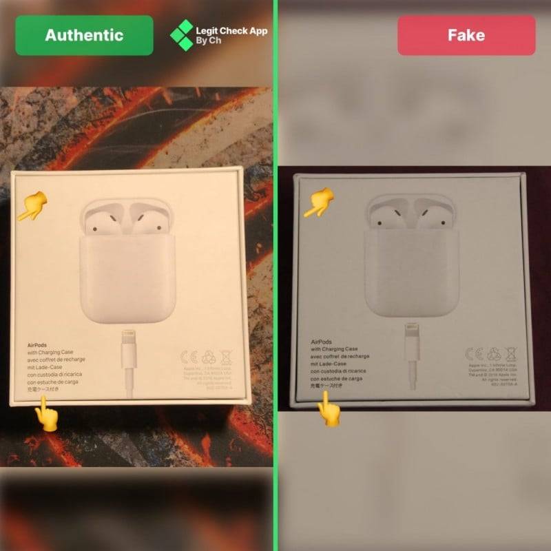 - Шрифт надписей на коробке с поддельными AirPods толще, чем на оригинальной коробке.