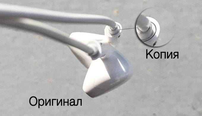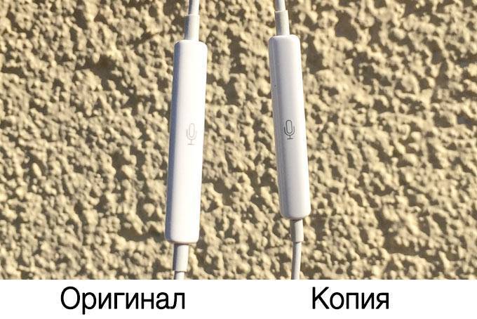 Теперь обратим внимание на пульт управления-гарнитуру. Визуально никаких отличий между оригиналом и копией нет. Для того, чтобы разобраться какие из наушников оригинальные, нужно прислушаться к ощущениям от нажатия:
