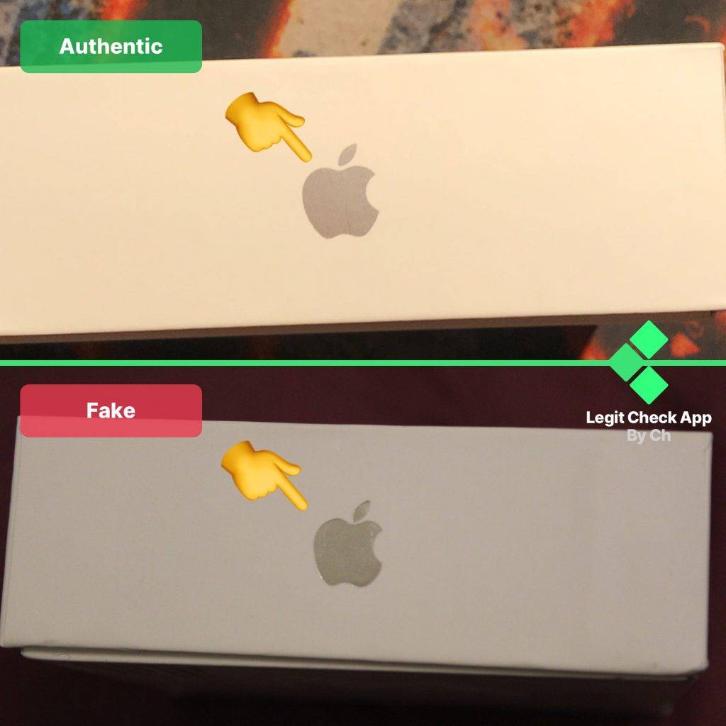 - В отличие от оригинала изображение Lightning-кабеля на поддельной коробке усечено в нижней части.