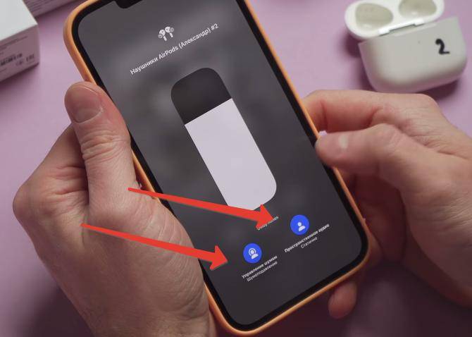 Оригинальные наушники предлагает включить пространственная аудио с отслеживанием положения головы. При подключении подделок в Пункте Управления появляется не только пространственное аудио, но даже и шумоподавление, которое не работает.