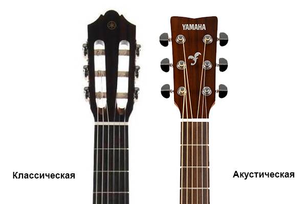 У акустического инструмента гриф соединяется с корпусом после четырнадцатого лада, а у классического – после двенадцатого. Эту разницу музыкант почувствует, если будет использовать высокие лады.