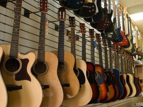 Главное преимущество гитары из магазина — гарантия: если через пару месяцев обнаружится какой-то дефект, гитару можно будет сдать. Минус — цены порой кусаются. Крупнейшие магазины в России — «Музторг», «Поп-мьюзик», «Мир музыки». Вероятно, в вашем городе есть и небольшие местные музыкальные магазины.