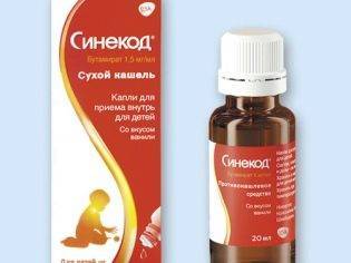 - «Синекод». Действие такого препарата обусловлено бутамиратом, который способен влиять на кашлевой центр в мозгу, но не является наркотическим веществом. Медикамент выпускается в каплях, которые разрешено использовать даже у грудничков старше 2 месяцев, а также в , назначаемом детям с 3 лет.
