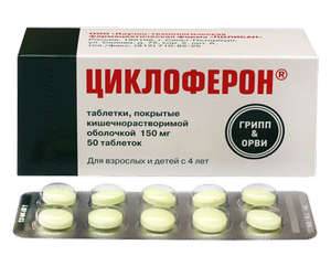 Представляет собой данный противовирусный препарат иммуномодулирующее и противовирусное средство. Применяют Циклоферон для лечения ОРВИ, вирусов гриппа и герпеса. Рекомендованный противовирусный препарат, исходя из его названия, запускает в организме некий цикл выработки интерферона и поддерживает его на надлежащем уровне, несмотря на быстрое выведение почками.