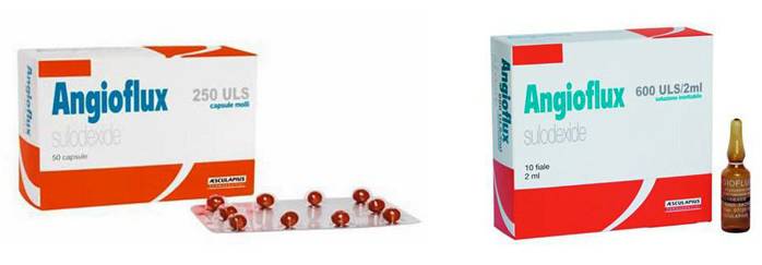 СоставАнгиофлюкс Раствор для внутривенного и внутримышечного введения1 мл. раствора содержит:Актисное вещество: сулодексид 300 ЕД.Ангиофлюкс Капсулы1 капсула содержит:Актисное вещество: сулодексид 250 ЛЕ.