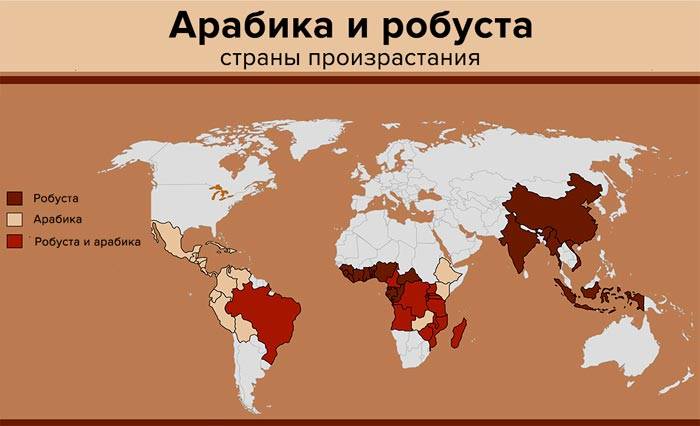 Современные регионы выращивания робусты практически, повторяют распространение арабики: Южная и Центральная Америка, Африка, юго-восток Азии. Однако, есть страны, где выращивание робусты находится под строжайшим запретом, чтобы избежать скрещивания видов. Например, в Колумбии и Коста-Рики.