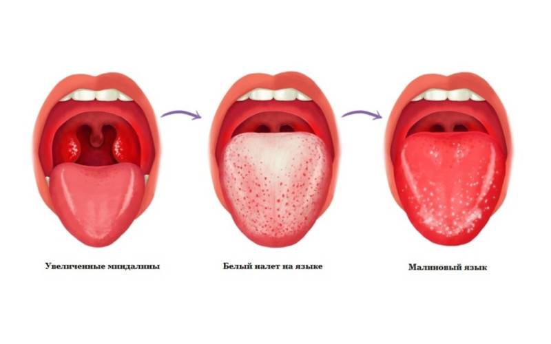 - Горло — боль или зуд в горле, а также кашель. Возможно, появление белого налета на задней стенке горла.