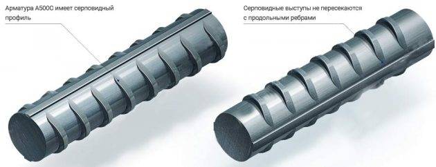 - ребристый профиль обеспечивает лучшее сцепление арматурного каркаса с бетоном;