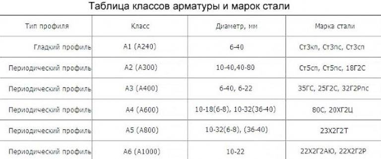 Наиболее важной классификацией считается разделение по химическому составу стали: По степени окисления в марке стали: КП – кипящая, ПС – полуспокойная и СП – спокойная. По классу прочности разделяют: А1 (AI), А2 (AII), А3 (AIII), А4 (AIV) и А5 (AV) или А240, А300, А400, А500, А600, А800, А1000. Термически упрочненная арматура классов Ат400, Ат500, Ат600, Ат800, Ат1000, Ат1200