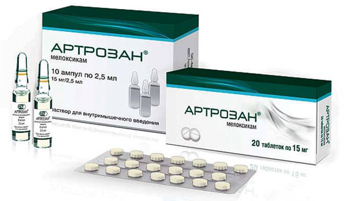 Показания к применению артрозана в ампулах – при таких же симптомах, что и таблетированная форма препарата с тем отличием, что внутримышечные инъекции мелоксикама показаны при очень сильных, выраженных болях, и их нужно срочно ослабить или полностью купировать.