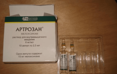 Показания к применению артрозана в ампулах – при таких же симптомах, что и таблетированная форма препарата с тем отличием, что внутримышечные инъекции мелоксикама показаны при очень сильных, выраженных болях, и их нужно срочно ослабить или полностью купировать.