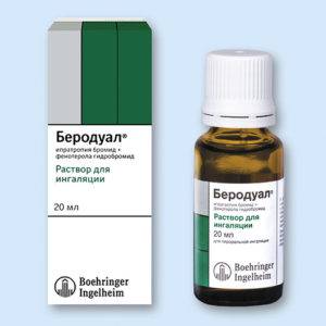 Беродуал входит в комплексную терапию бронхиальной астмы первой ступени, то есть при интермиттирующей форме. Эта стадия болезни характеризуется редкими эпизодами обострения, умеренное снижение объема форсированного выдоха за секунду — не менее 80% от нормы, а также редкими ночными приступами или их отсутствием. Рандомизированные плацебо-контролируемые клинические исследования показали высокую эффективность лекарства в отношении выраженности бронхорасширяющего действия, так как в состав входят два активных вещества разных фармакологических групп. Препарат воздействует сразу на две точки — специфические рецепторы бронхов и гладкомышечные клетки.