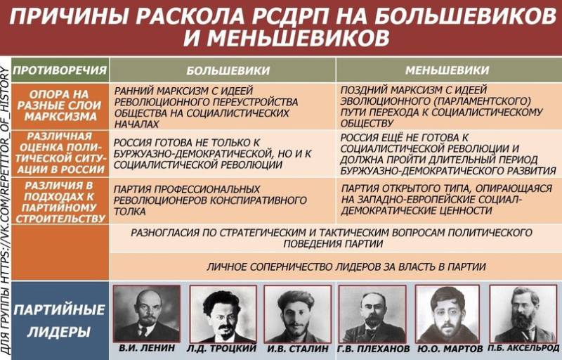 Кратко о большевиках и меньшевиках расскажет эта таблица: