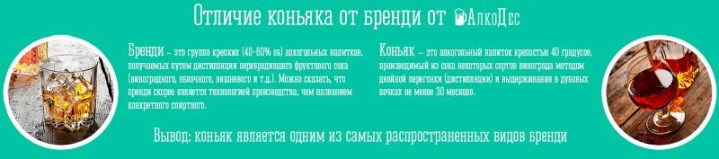 То есть brandy – это, в сущности, технология производства крепкого алкогольного напитка из самых различных пищевых продуктов. А коньяк – это определенный напиток из Франции, для которого существует целая прорва законодательных ограничений. Вот в этом и заключается самое главное их отличие или различие.