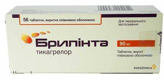 Брилинта (действующее вещество – тикагрелор) – селективный конвертируемый антагонист рецептора к АДФ, препятствует АДФ-посредническому возбуждению, скучиванию тромбоцитарных пластинок.