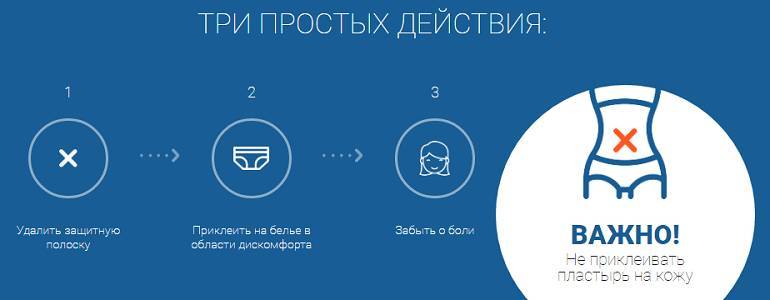Благодаря современной фармацевтике лечение при менструальных болях можно заменить или дополнить при помощи разогревающих пластырей, которые достаточно наклеить на ткань белья или определенный участок тела, в зависимости от инструкции. По истечении 20 минут температура гелевой пластинки дойдет до 50 градусов, что ускорит кровообращение, уберет спазмы и поможет справиться с болью. Время действия такого пластыря доходит до 6 часов. Запрещено использование более 2 штук в сутки (т. е. дольше 12 часов) из-за риска получить ожог. Кроме того, нельзя рвать пластырь и допускать попадание содержимого в глаза и на слизистые оболочки.