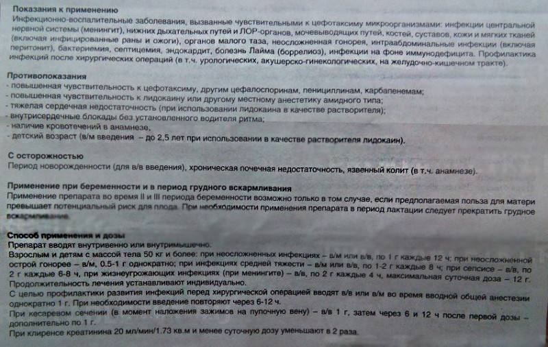 Цефотаксим считается более безопасным антибиотиком, очень редко приводит к развитию аритмии (в случае превышения рекомендованной дозы). Во время лечения рекомендуется внимательно следить за составом крови, так как они способны изменять ее реологические свойства.