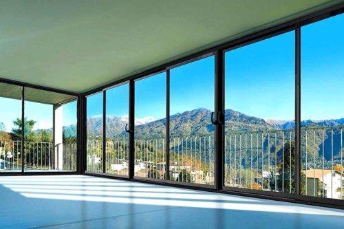 Алюминиевые профили являются очень легкими, что очень важно, когда рамы устанавливаются непосредственно на парапет. К тому же, рамы застекляются обычным листовым стеклом, имеющим толщину 3-5 мм, что тоже облегчает конструкцию окон.