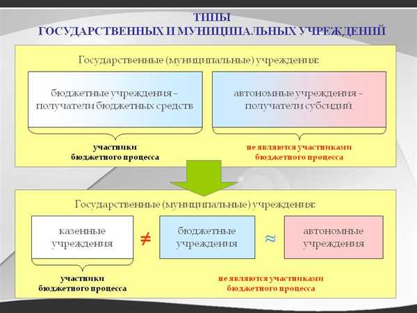 Бюджетные учреждения представляют собой организации, созданные и финансируемые государством за счет выделенных бюджетных средств. Такие учреждения чаще всего занимаются предоставлением различных услуг гражданам, например, здравоохранение, образование, культура, социальное обеспечение и т.д. Например, школа или государственное медицинское учреждение – это примеры бюджетных учреждений. Они функционируют на основе бюджетных средств, контролируются государственными органами и подчиняются правилам и нормам, установленным государством. Казенные учреждения, как одна из разновидностей бюджетных учреждений, имеют простую структуру и подобные механизмы управления, характерные для государственных организаций.