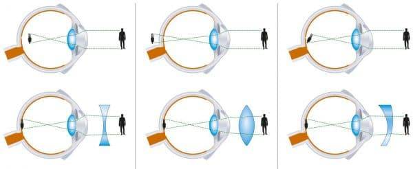 Наконец, при дальнозоркости световые лучи направлены на пространство за сетчаткой, при близорукости — перед ней.