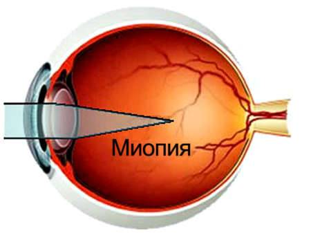 Близорукость, как правило, определяется как сферическая рефракционная ошибка, вызванная осевым удлинением оптической оси, что ведет к смещению фокуса от сетчатки вперед.