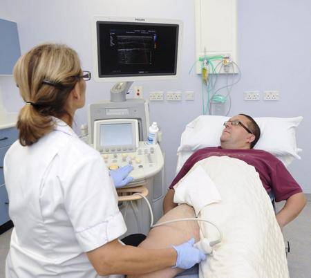Второй существенный момент — условия пребывания больного. При ультразвуковом исследовании обследуемый находится на кушетке в нужном положении.