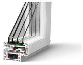 Изделие представляет собой двухкамерный стеклопакет. Окна ПВХ состоят из трех стекол, образующих две воздушные камеры. Такая особенность увеличивает тепло- и звукоизоляционные свойства конструкции.