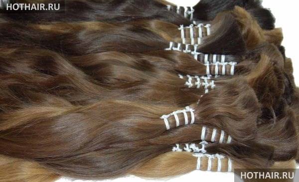 В завершение процедуры формируются собственно пряди. Они либо закрепляются на трессе, либо стягиваются тугой резинкой. В таком виде они поступают в продажу. Впоследствии славянские волосы для наращивания формируются в небольшие пряди, удобные для той или иной технологии.