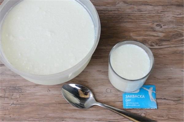 - Закваска. Для приготовления брынзы используется сметана или готовая закваска. Подобный продукт является натуральным и содержит важнейший для формирования сгустка бактериальный компонент. С его помощью молочная основа быстро и правильно киснет, образуя твердую массу. Для изготовления соленого сыра используется несколько видов заквасок – с активизацией на молоке или с добавлением закваски в готовый продукт. Покупная закваска выпускается в двух видах – в жидком и в сухом.