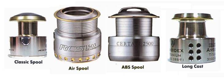 Air spool — Их отличие от стандартных шпуль состоит в том, что они обладают большим в диаметре сердечником. Такие шпули дают меньшую лесоемкость, они не требуют предварительной намотки — бэкинга. Они обеспечивают более ровную укладку лески. На таких шпулях обычно применяют тонкую плетенку.
