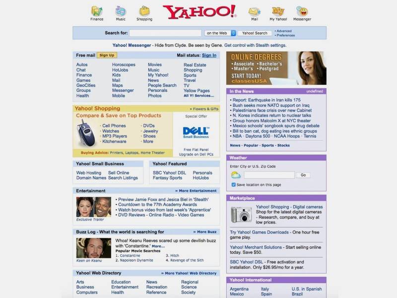 Главная страница Yahoo в 2005 годуИзображение: Yahoo