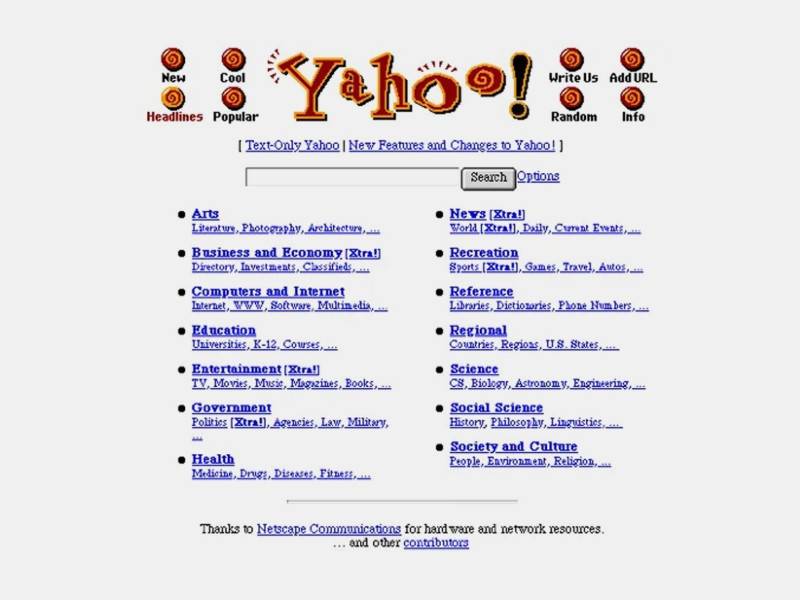 Первый интерфейс Yahoo. 1995 годИзображение: Yahoo