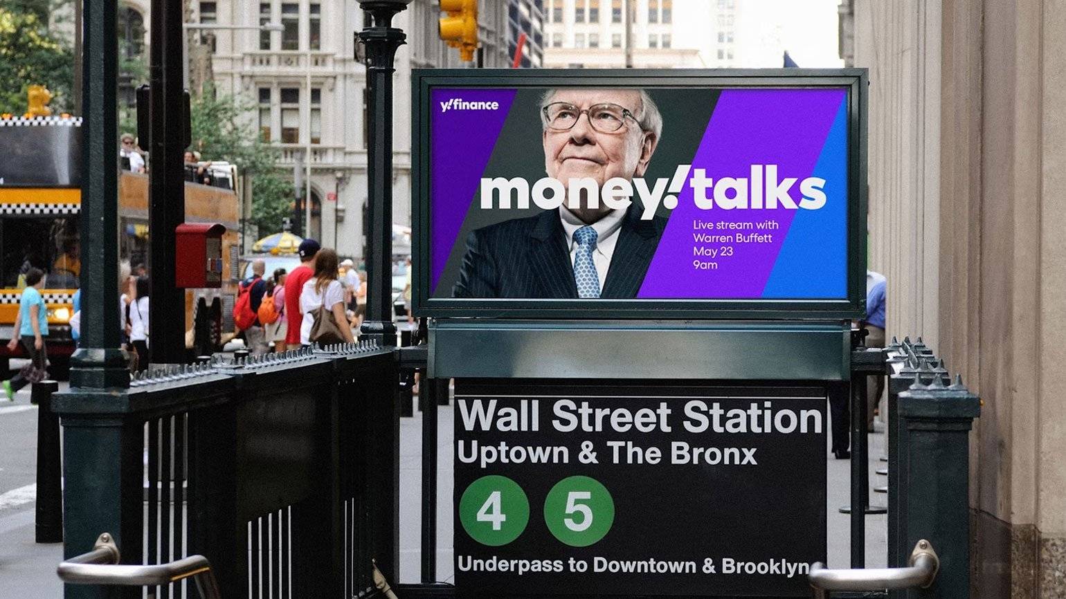 Сочетание разных оттенков фиолетового на билбордеИзображение: Yahoo / Pentagram