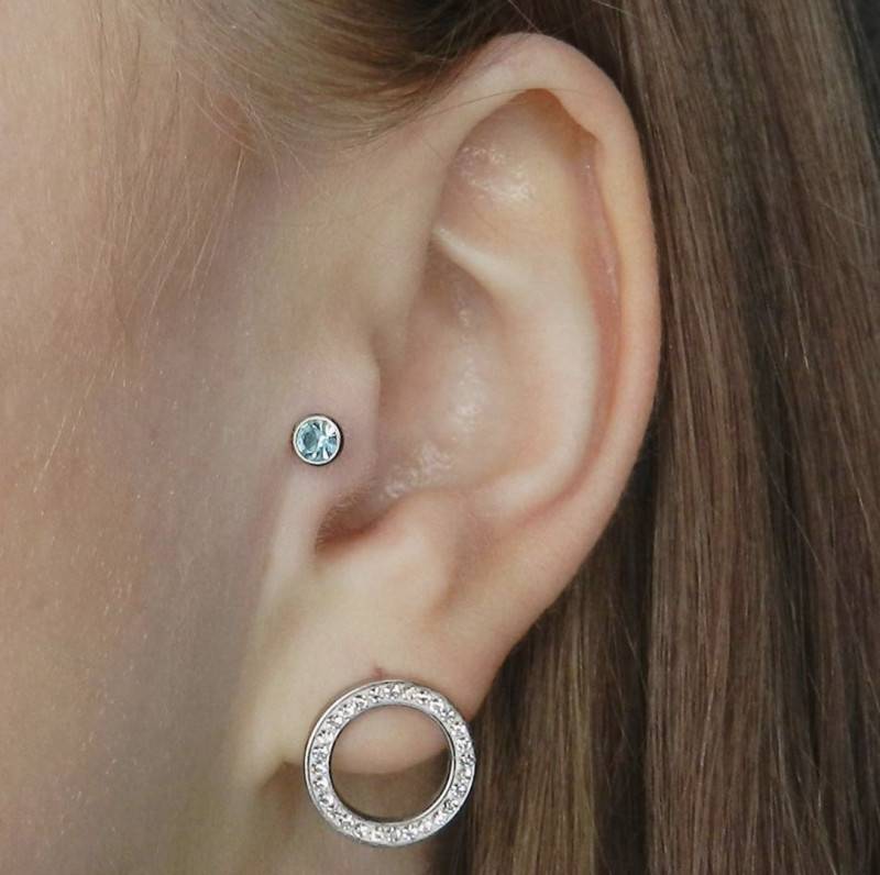 Возьмём два очень популярных и красивых пирсинга хеликс и индастриал, каждый из них выполняется по разному это и поможет нам их сравнить.