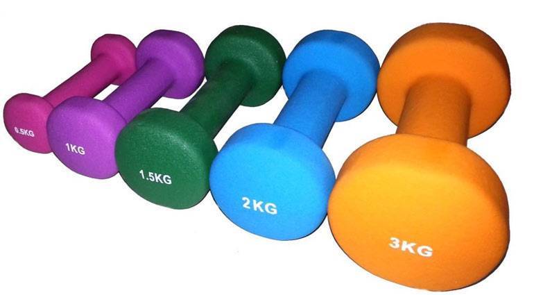 С неопреновым покрытием – также предназначены для аэробики и женского фитнеса. Отличаются небольшим весом, приятным для кожи материалом и возможностью впитывать пот, исключая скольжение снаряда в руке.