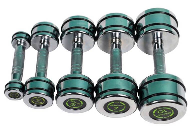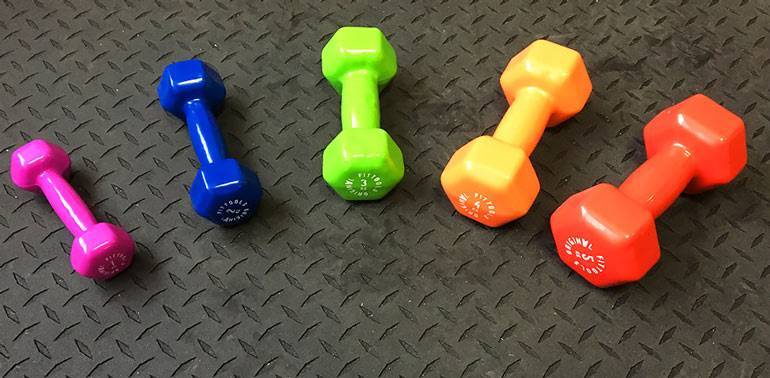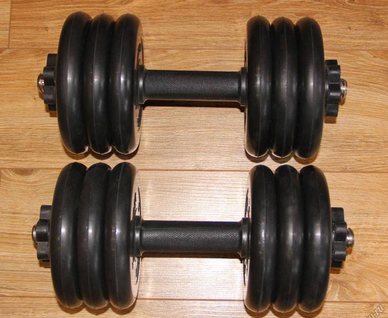 Гантель должна быть цельная, обрезиненная, цветная (последнее — для поднятия настроения).