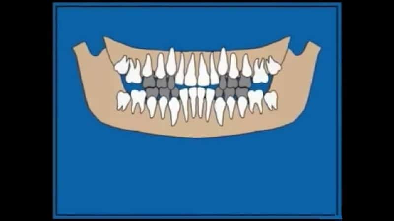 Постоянные резцы, клыки и моляры начинают расти внутри временных. В корневых каналах молочных зубов, которые более короткие и тонкие, начинают разрастаться постоянные корни, тем самым способствуя выпадению временных.