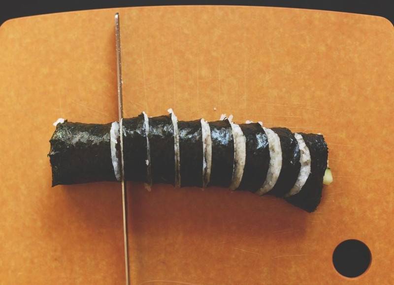 - Перед подачей на стол, разрежьте роллы на порционные кусочки при помощи острого ножа, смоченного в воде.