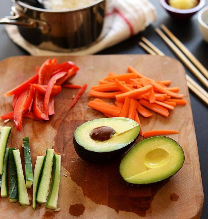 Овощи — отличная альтернатива рыбе, особенно если вы предпочитаете свежие и хрустящие ингредиенты. Вы можете использовать морковь, огурцы, авокадо, спаржу, паприку или любые другие овощи по своему вкусу. Просто нарежьте их тонкими ломтиками и аккуратно заверните в рис и нори.