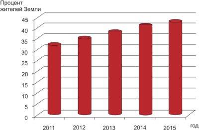Рис. 3. Количество подключенных к Интернету жителей Земли в 2011–2015 гг. (по данным Facebook)