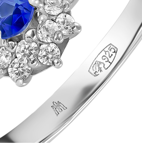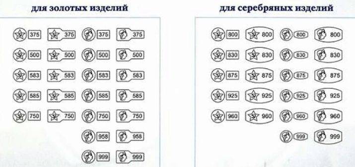 · трехзначная проба драгоценного металла — указывает на долю благородного металла в сплаве: так, в серебре 925 пробы содержится 92,5 % чистого серебра.