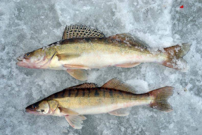 Зимой повышается шанс выловить трофейный экземпляр. Поклевка приходится на период с 9 до 12 часов дня. Лунки сверлят на расстоянии 5-6 метров друг от друга в районе подводного спуска ближе к его краю.