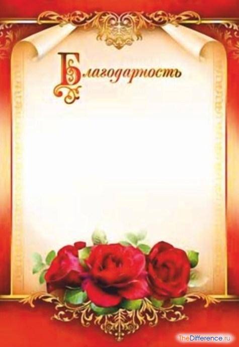 Благодарственное письмо (благодарность) только выражает уважение к совершенному деянию. Грамоты выдаются на официальных бланках, которые содержат минимум украшений. Благодарности же могут быть яркими и запоминающимися. Нередко бланки содержат печатные изображения.